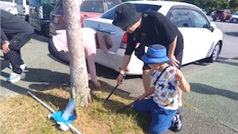 ごみ拾いの様子(沖縄日本管財社員とその家族)